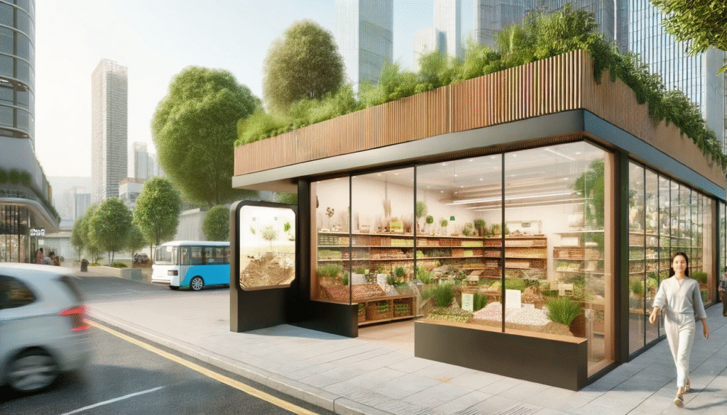 متجر جميل خالٍ من النفايات مع صناديق جملة خالية من العبوات. تشكيلة عضوية قوية مع أدوات منزلية مستدامة.