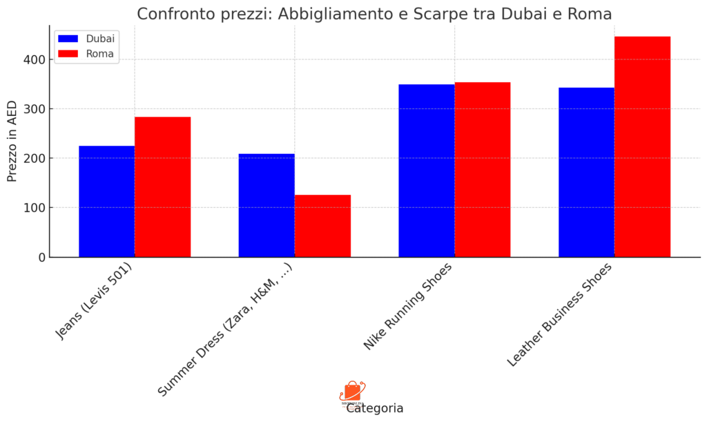 | Abbigliamento e Scarpe | Dubai | Roma | Variazione % |
